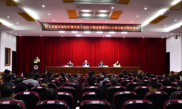 三湘统战网11月24日讯 11月23日晚上19:30分,全省民主党派市级组织领导班子成员专题进修班同心互动交流会暨结业式在省社会主义学院同心楼一楼报告厅举行,省委统战部副部长、省社院党组书记邓焕生出席并讲话,省社院副院长黄自荣主持结业式。