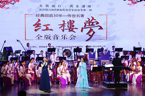 三湘统战网11月30日讯(通讯员 刘清)11月28日晚上,“长歌而行?快乐潇湘”2017湖南民族音乐季《红楼梦》全版音乐会在湖南大剧院惊艳亮相,轰动星城。民进湖南省直文化支部主委、湖南省歌舞剧院副院长、国家一级演员、著名二胡演奏家张音悦担任音乐季艺术总监,特邀民进中央原专职副主委、《红楼梦》作曲家王立平亲临现场、亲自讲解,全国人大代表、民进会员、著名女高音歌唱家吴碧霞担纲演唱。