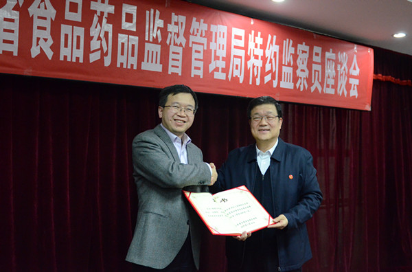 三湘统战网1月16日讯(通讯员 郑琛琛)1月16日下午,省委统战部副巡视员符俊根应邀出席省食品药品监督管理局特约监察员座谈会,省食药监局党组书记、局长刘湘凌为受聘的8名特约监察员颁发聘书,就做好特约监察专员工作提出具体要求,省食药监局副巡视员刘迎华主持会议。