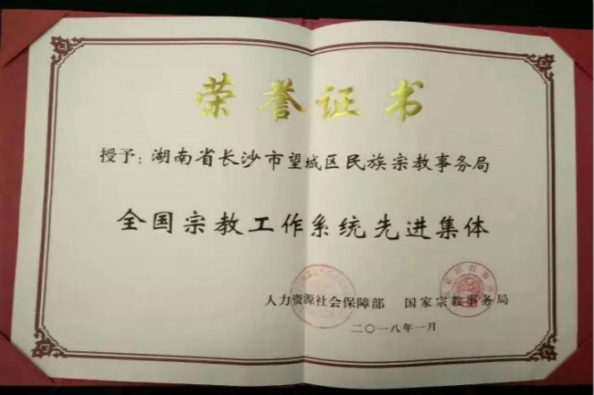 三湘统战网1月10日讯(通讯员 郑寓亮)1月8日,全国宗教工作系统先进集体和先进工作者、全国宗教工作及奖励单位和个人表彰大会在北京举行。长沙望城区民族宗教事务局作为32个获评的全国宗教工作系统先进集体之一参加了本次大会并接受表彰。