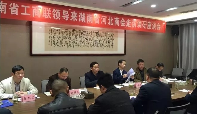 湖南省河北商会会长梁现彪,执行会长任丙火,常务副会长李世龙、李文祥、王洪新、许崇岐,副会长郝德芳、贾立柱和秘书长赵青山 参加调研会。