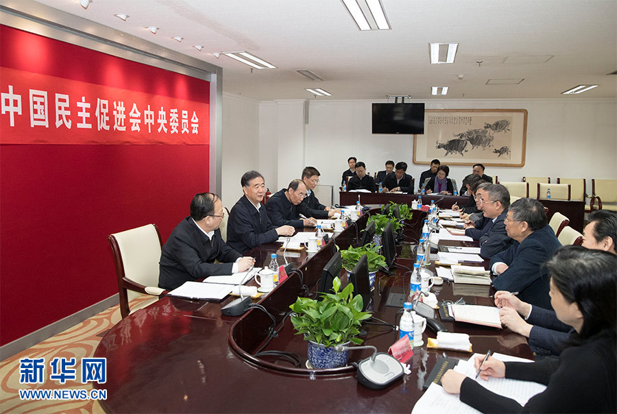 近日,受习近平总书记委托,中共中央政治局常委、全国政协主席汪洋代表十九届中共中央,逐一走访各民主党派中央和全国工商联,并同各民主党派中央和全国工商联的领导班子成员座谈。这是3月23日,汪洋走访民进中央并同领导班子成员座谈。新华社记者 王晔 摄