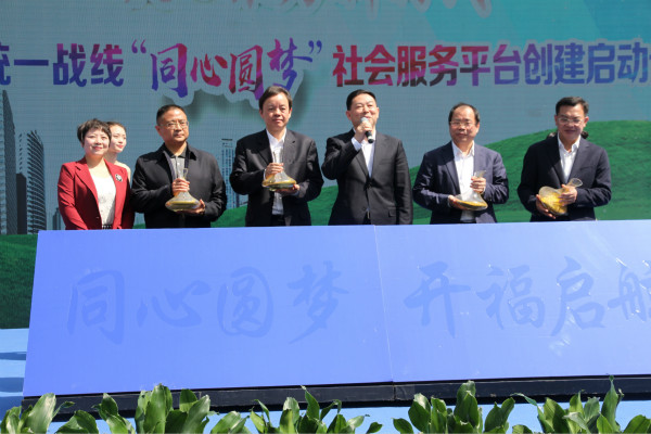 三湘统战网4月9日讯(通讯员 郑寓亮)4月9日,开福区召开统一战线“同心圆梦”社会服务平台创建启动仪式。本次活动围绕“蓝天梦”、“助学梦”等七大主题展开,由开福区委主办,开福区委统战部、开福区清水塘街道党工委共同承办。湖南省委统战部常务副部长谭平,长沙市委常委、统战部长谭小平,市人大常委会副主任、致公党市委主委王国海出席,各民主党派市委负责人、“同心结对”驻湘异地商会负责人等参加活动。