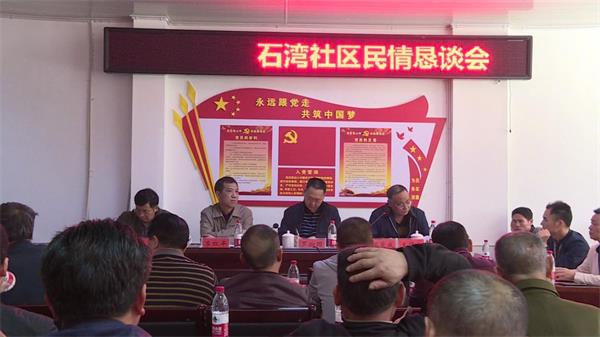 会上,石湾社区负责人汇报了近年来社区工作情况,社区居民代表纷纷进行了座谈发言,分别就社区环境卫生、社区路灯建设、棚户区改造、城乡同创等问题提出了意见和建议。罗翔国表示:“学思想 转作风 访民情 解民忧”要按照省委市委的工作要求,必须站在讲政治的角度与上级保持高度一致,要用心、用情把走访工作做到位,要帮助石湾社区解决具体问题,促进石湾社区的经济发展。