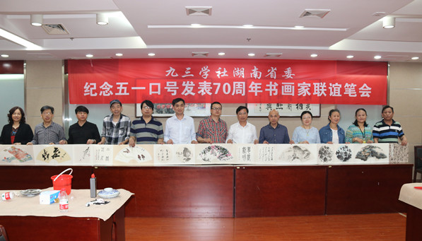 4月19日下午,九三学社湖南省委在民主党派湖南省委机关会议中心举行纪念五一口号发表七十周年书画家联谊笔会,社省委专职副主委王仁祥、社省委书画院常务副院长邹培刚参加笔会。唐风、刘欢乐、曾涤尘、谭蔚、蒋琳、李桃宁、袁品良、宁湘、方恩达、戴建国、马君声等书画家现场挥毫泼墨,留下多幅精彩的书画作品。