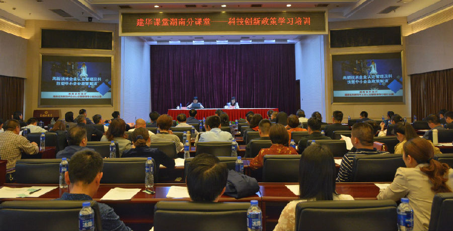 为全面贯彻落实中共十九大精神,加快实施创新引领、开放崛起战略,提高会员企业科技创新能力,同时,作为民建湖南省委纪念中共中央发布“五一口号”70周年主题活动之一,4月21日,建华课堂湖南分课堂第13讲——“高新技术企业及科技中小型企业认定评价、科技创新计划与经费管理相关政策解读”培训在长沙举办。民建湖南省委副主委、省科技厅副厅长朱皖主持培训会,民建湖南省委副主委、省工商行政管理局副局长李沐出席活动。