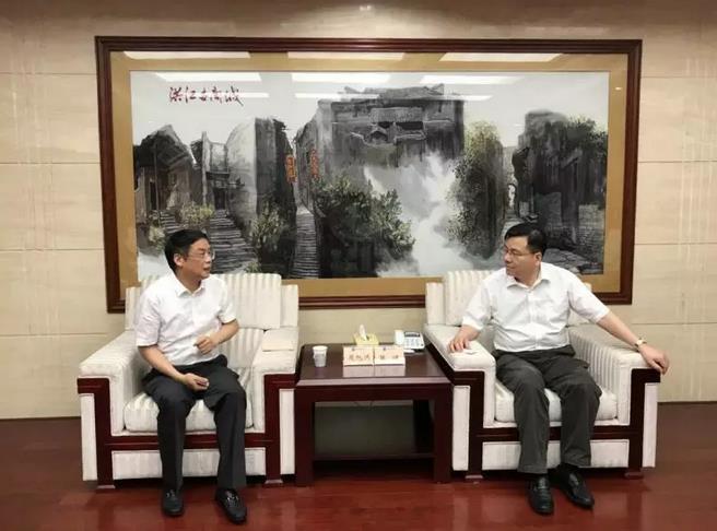 4月30日,省政协副主席、省工商联主席、省总商会会长张健在湖南商会大厦会见来访的江苏省湖南商会会长、宇业集团董事长周旭洲一行。