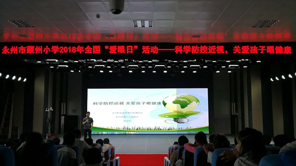 2018年6月6日是第23个全国“爱眼日”,今年的活动主题是“科学矫正近视,关爱孩子眼健康”。农工党永州市直医疗支部走进市萍州小学开展眼病义诊和眼健康知识讲座活动。