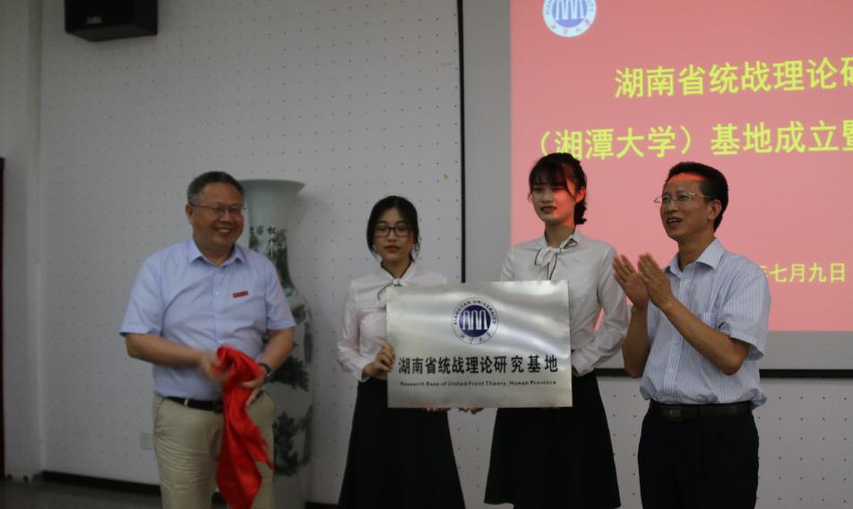 7月9日下午,湖南省统一战线理论研究会(湘潭大学)研究基地挂牌成立。湘潭大学党委书记黄云清、省委统战部副部长符俊根出席并讲话。湘潭大学党委副书记高协平主持挂牌仪式。