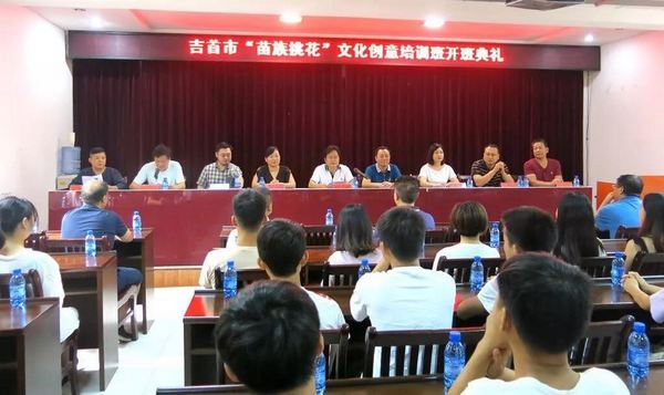 8月10日,由民盟湘西州委、湘西州人社局、吉首市人社局、吉首市旅游文广新局、吉首市就业局联合举办的“苗族挑花”创意培训班开班典礼在吉首市党校举行。州人大常委会副主任、民盟湘西州委主委刘小刚出席并讲话。