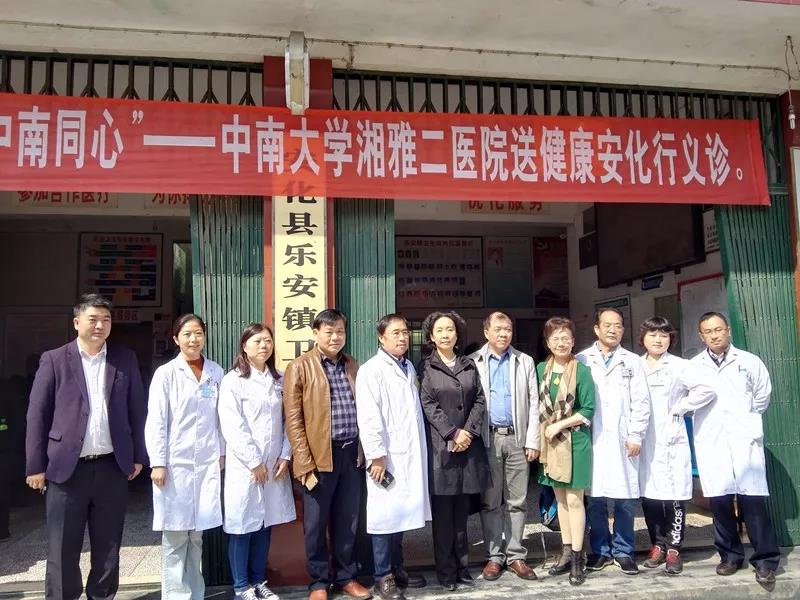 第三站,医疗援助安化县。组织中南大学湘雅二医院的10位党外专家教授,为安化县800多名贫困群众进行义诊,并对50余名医护人员开展医卫技能培训,建立起健康扶贫的长效机制。