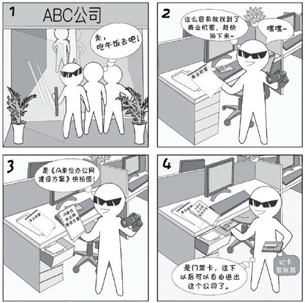 乔装成各种工作人员作案是商业间谍或黑客收集信息的重要方式之一。