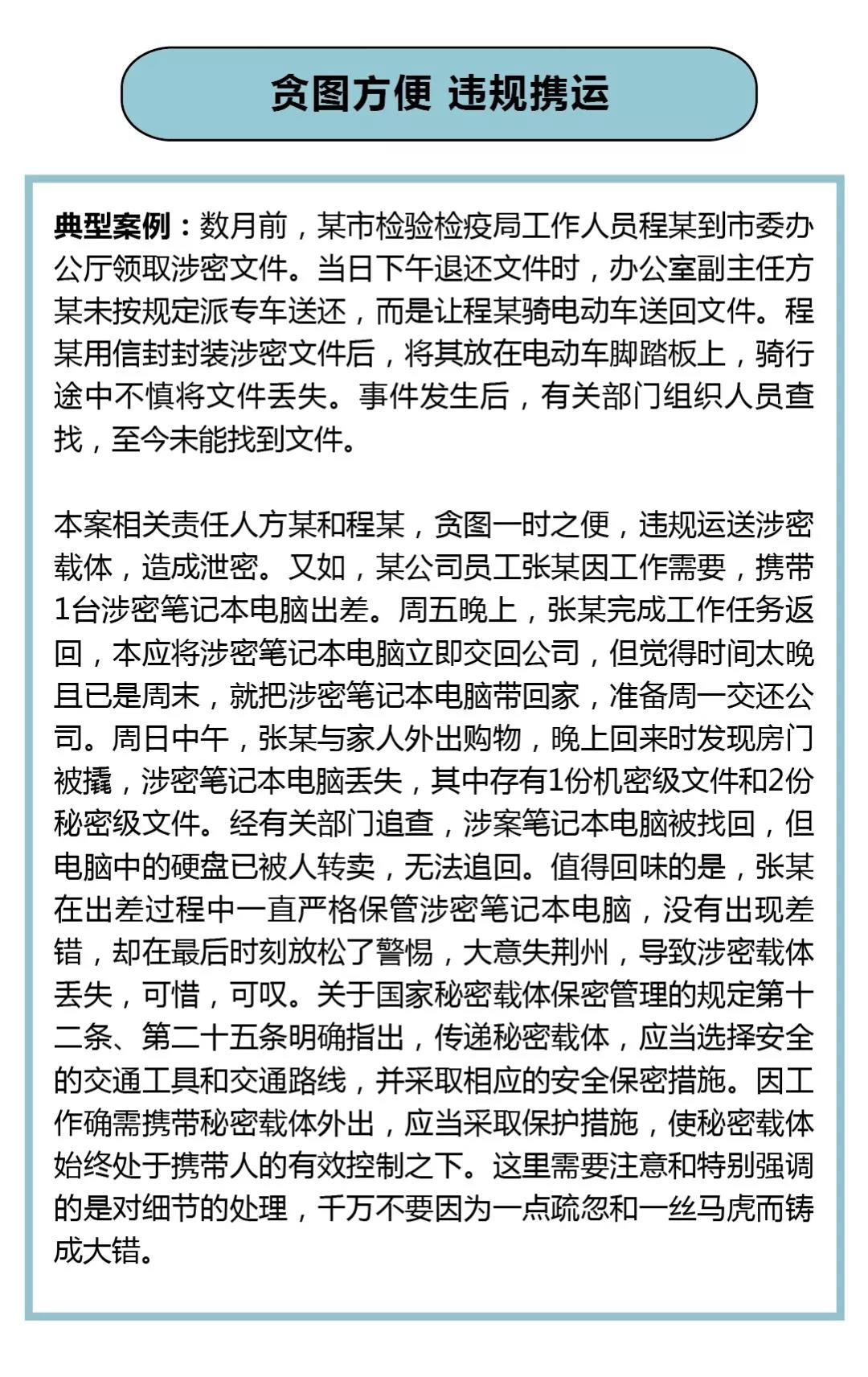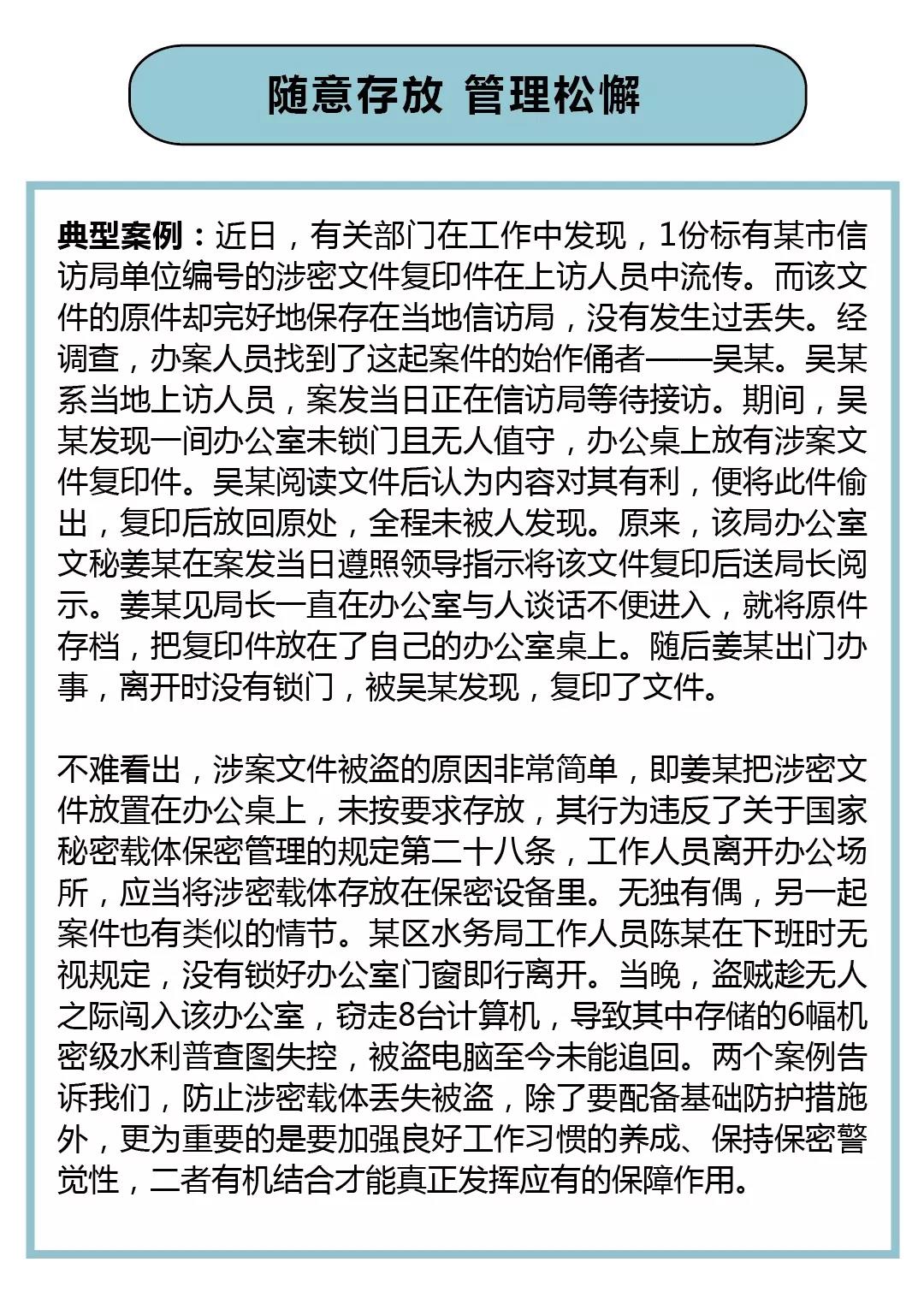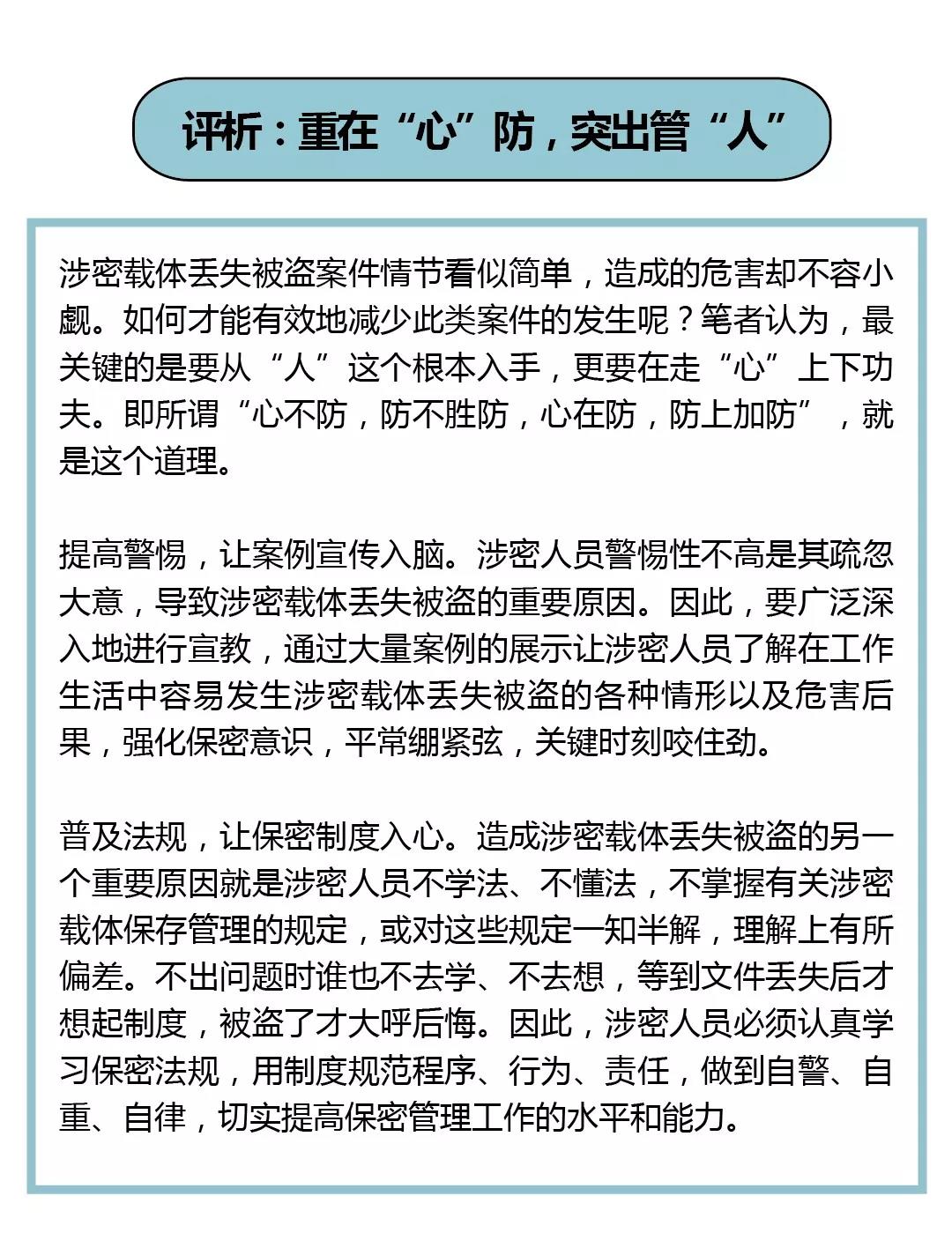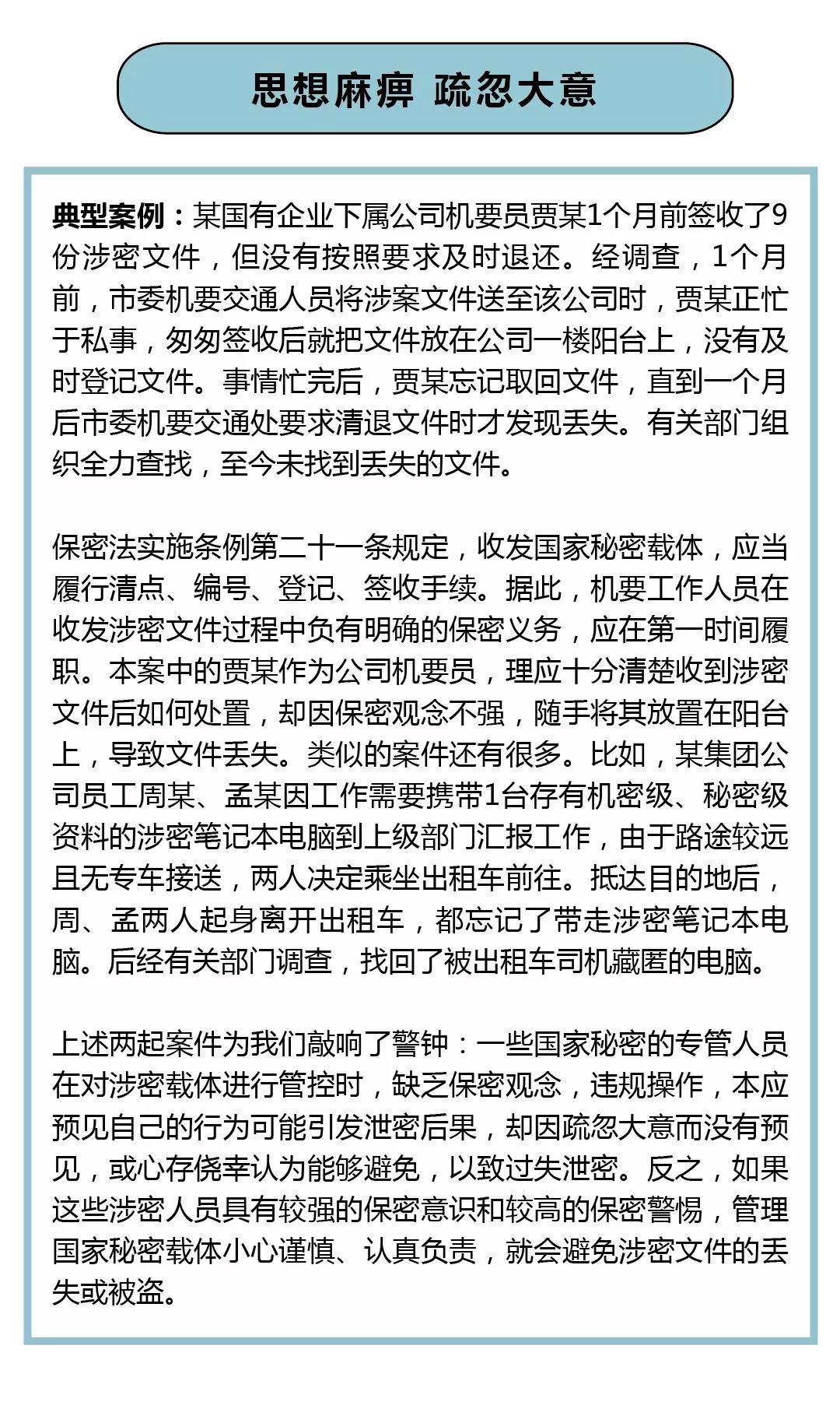 近年来,随着保密科技防护能力的不断增强,计算机及网络失泄密趋势得到了有效遏制。与之相悖,由于保密管理不到位导致涉密载体丢失被盗的情况却多有发生,值得深思。笔者对部分案例进行梳理后发现,发生此类案件的原因相仿,主要是少数涉密人员保密意识淡薄、思想麻痹,造成了泄密恶果。