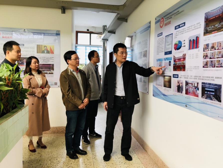 周自荣一行在吴国寰的陪同下,参观了社省委机关文化墙,对九三学社省委的基本情况和近年来的工作有了比较全面的了解。