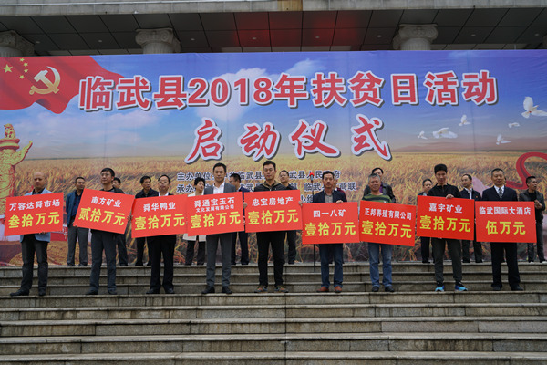 10月17日是我国第5个扶贫日、第26个国际消除贫困日,临武县举行了以“关爱贫困家庭,助力脱贫攻坚”为主题的扶贫日活动启动仪式。全县非公有制企业积极参与,现场捐赠228.98万元,为脱贫攻坚提供资金支持。