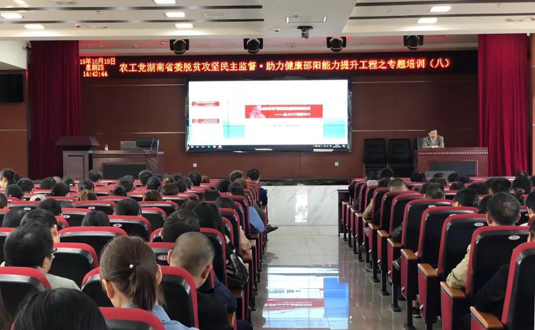 10月18日下午,农工党省委在新邵县人民医院举行民主监督脱贫攻坚·助力健康邵阳能力提升工程之专题培训。
