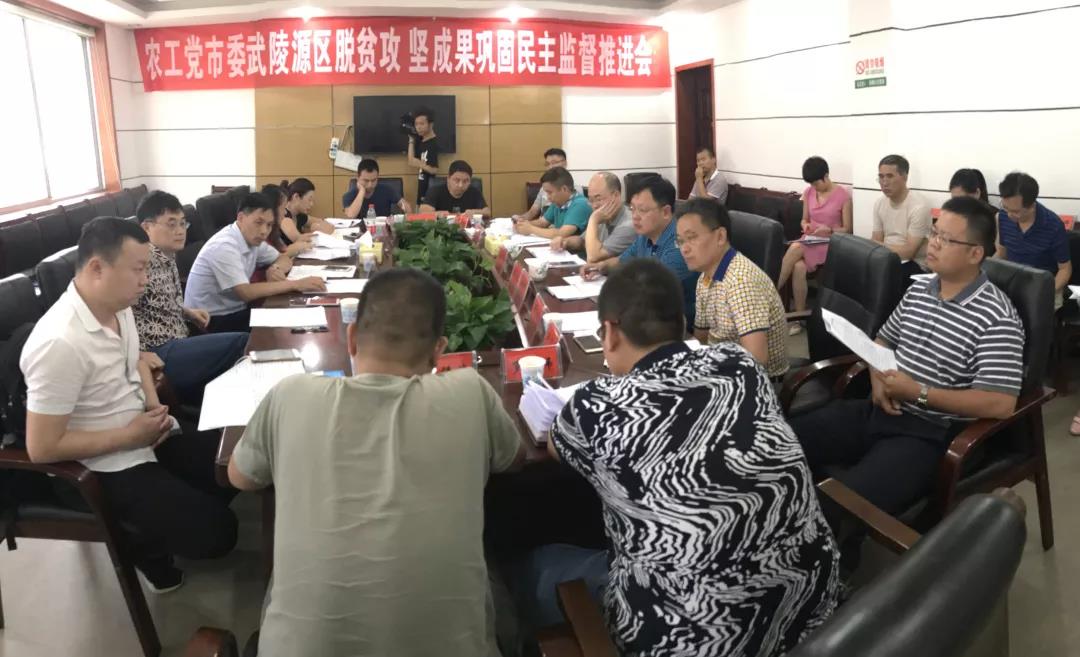 农工党张家界市委精心组织,努力推进,扎实工作,对武陵源区实行全域脱贫攻坚民主监督,在市级五个民主党派中率先探索开展脱贫攻坚民主监督和脱贫攻坚成果巩固民主监督工作。组织民主监督组成员79人次,12次集中开展民主监督,入户调研568户,占预脱贫户50.7%,涵盖贫困人口1805人;和武陵源区、乡(街道)党(工)委召开了14次调研座谈会、民主监督推进会和协商座谈会。
