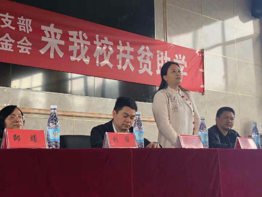 民建中央新技术产业与制造业专委会副主任、企业支部副主委、湖南高升宏福家俱制造有限公司董事长谢沛吾代表企业支部致辞。她说,同学们的家庭困难只是暂时过程,只要认真学习,打好基础,将来一定能成为国家的栋梁之材,做自己命运的主人。她还表示,企业支部将利用自身优势,继续支持贫困地区的扶贫事业,为打赢扶贫攻坚战贡献力量。
