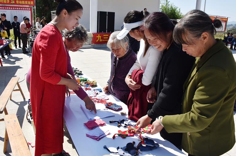 九三社员大布江拼布绣的非遗传承人何娟委托助手来到金宝为当地的妇女同胞们带来了省非遗项目拼布绣的作品展示与现场教学。