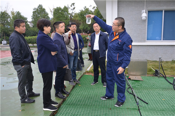 熊兆伟一行在中控室了解了处理厂日常运作情况,实地考察了污水处理池、沉淀池、网管铺设、进出水口的运营情况,听取了相关负责人就污水处理情况、处理量、减排任务等情况的介绍。