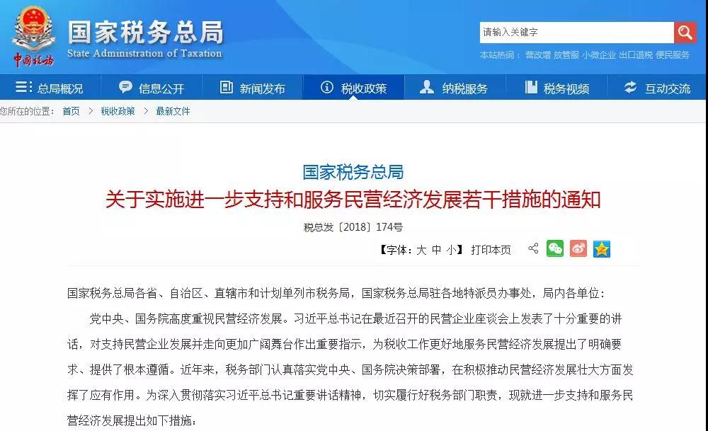 “一直以来,税务部门都坚持对民营企业一视同仁,今年前三季度,以民营企业为主体的小微企业共享受减税1437亿元,同比增长41.3%。”税务总局政策法规司负责人黄运介绍,《通知》明确,各级税务机关要坚决贯彻依法征税的组织收入原则,坚决不收“过头税”,坚决落实减免税政策。对符合享受税收优惠政策条件的民营企业与其他纳税人一律平等对待,确保优惠政策落实到位。要依法依规执行好小微企业免征增值税、小型微利企业减半征收企业所得税、金融机构向小微企业提供贷款的利息收入及担保机构向中小企业提供信用担保收入免征增值税等主要惠及民营企业的优惠政策,持续加大政策落实力度,确保民营企业应享尽享。