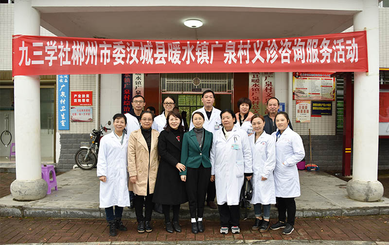 为推动精准扶贫工作深入开展,11月15日,九三学社郴州市委专职副主委刘艳红带领市第一人民医院、市第三人民医院、市第四人民医院和湘南学院附属医院的8名专家医生,赴汝城县暖水镇广泉村开展义诊咨询服务活动。两个多小时,医生们为100余名村民测量血压、解答疑难、开具处方。发药处的医师忙而不乱,向每一位村民细心叮嘱药品用量及使用注意事项,并发放一万七千多元药品。