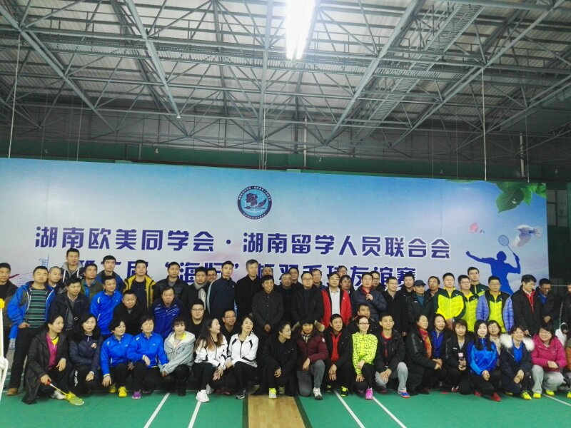 湖南欧美同学会·湖南留学人员联合会成立于2009年,2014年11月换届,现有理事235名,其中院士两人。近年来,在省委统战部的领导下,湖南欧美同学会•湖南留学人员联合会以组织建设为抓手,围绕打基础、促改革、抓建设、造品牌、树形象的工作思路,团体会员从无到有,增加到5个。通过服务中心大局、服务广大留学人员,在促进我省创新开放、人才服务,以及打造留学人员温馨之家方面,工作取得一定的成效。这次羽毛球友谊赛,是湖南欧美同学会·湖南留学人员联合会举办的第二届“海归杯”比赛,广大留学人员参赛踊跃,大家认为这样的活动很有意义,搭建了留学人员联谊交友的平台,加强了留学人员组织之间的联系,进一步增强了欧美同学会凝聚力、影响力、号召力。