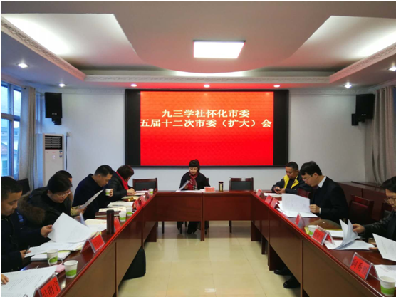 三湘统战网1月10日讯(通讯员 唐坚平)1月7日下午,九三学社怀化市委五届十二次市委扩大会议在民主党派怀化市委机关四楼会议室召开。会议由省政协常委、社怀化市委主委韩晓波主持。会上,社市委中心组学习了习近平总书记在庆祝改革开放40周年大会上的重要讲话。社怀化市委专职副主委丁金平传达了社中央十四届二次会议、社省委2018年社务工作会议和中共怀化市委经济工作会议精神。向与会人员通报了2018年社怀化市委和各基层组织在参政议政、民主监督、社情民意、四同创建、社会服务、宣传信息等方面的特色和亮点工作。审议通过了2018年度工作报告、各基层组织考核以及“突出贡献社员”、“优秀社员”和“社情民意信息先进个人”名单;审议通过了九三学社怀化市第五届委员会第四次全会议程。