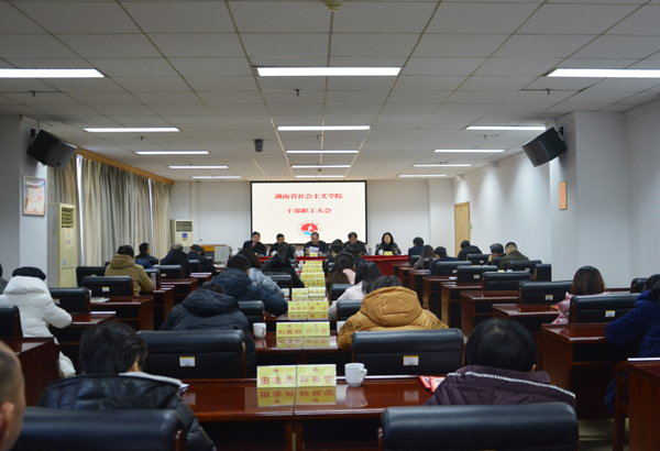 1月11日上午,省社会主义学院召开干部职工大会总结2018年度工作,省委统战部副部长、省社院党组书记邓焕生主持,省社院院长、民进省委副主委雷鸣强作年度总结讲话,院领导周述杰、彭英、黄自荣及全体干部职工参加。