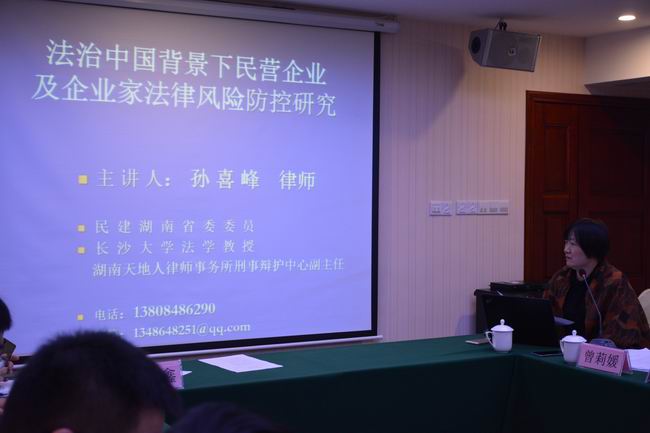 会上,副主任张治梧首先传达了民建湖南省第九届委员会专门委员会成立大会会议精神,副主任陈文曲领学了《民建湖南省委专门委员会通则》的内容,副主任孙喜峰以“民营企业刑事法律风险及其防范”为主题开展讲座,强调民营企业家要掌握法律法规,依法参与企业各项事务的管理和决策,规避外部经营风险,维护企业合法权益。她的讲课高屋建瓴,旁征博引,内容丰富,得到与会委员的一致好评。