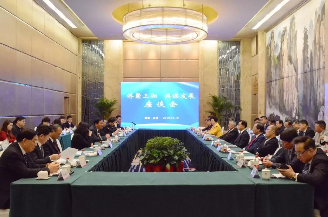 1月18日上午,侨聚三湘共谋发展座谈会在长沙举行,来自19个国家和地区的40名侨领侨商齐聚长沙,为湖南经济社会发展出谋划策。副省长何报翔出席座谈会。
