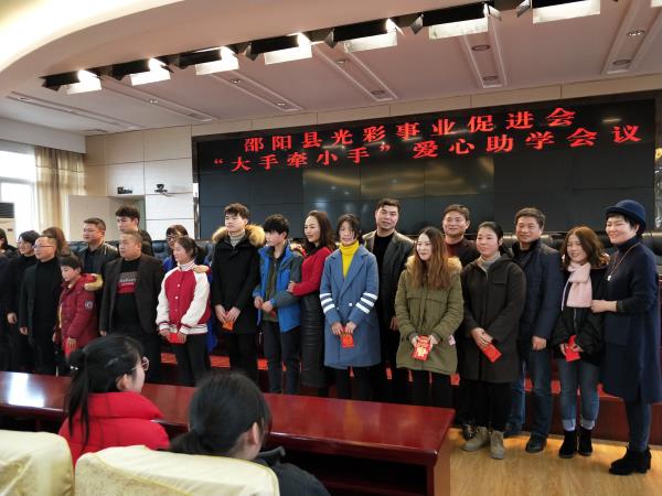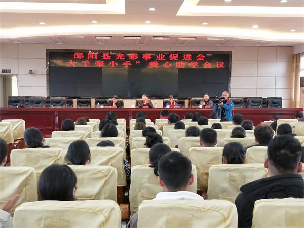 三湘统战网1月29日讯(通讯员 蒋楚敏)1月24日下午,邵阳县光彩事业促进会2018年度扶贫助学活动在县政府七楼会议室举行,县委常委、统战部部长李博,县人大常委会副主任、工商联主席蒋梅娥,副县长刘丹,县政协副主席伍芬东及爱心企业代表出席活动。本次活动共资助困境学子87人,发放爱心款26.1万元。