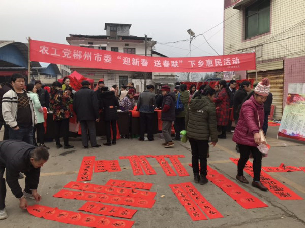 三湘统战网1月30日讯(通讯员 袁光校)1月29日农历腊月24正值过小年,农工党郴州市委组织书法爱好者,来到资兴市回龙山瑶族乡开展“迎新春送春联”下乡惠民活动,给当地老百姓送上特别的节日礼物。