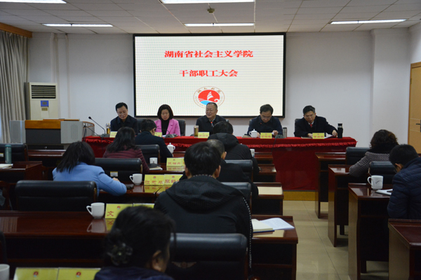2月27日上午,省社会主义学院召开全院干部职工大会,安排部署2019年工作,省委统战部副部长、省社院党组书记邓焕生主持,省社院院长、民进省委副主委雷鸣强作春季开学报告。院领导彭英、黄自荣、洪真健、周述杰、彭仕敏及全院干部职工参加会议。