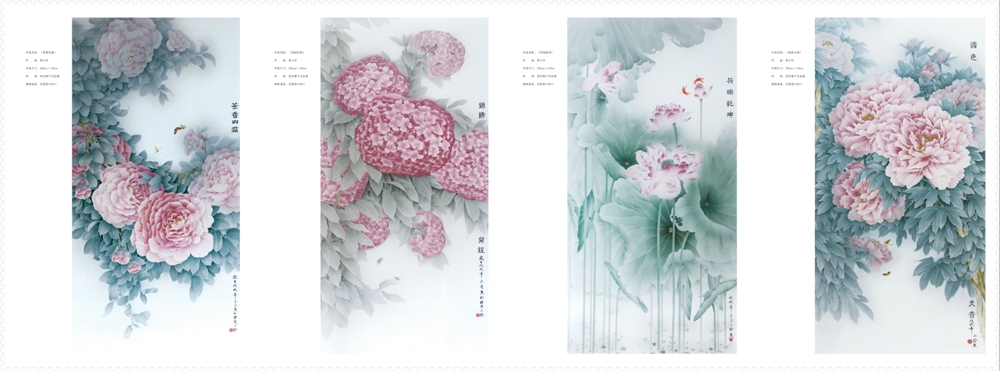 作为我国重要的政治、文化和外交活动地点,人民大会堂对于摆放的每一件艺术作品都有着严格的标准。《四季同春》用色清新淡雅,不流于俗,效果明艳秀丽,不可方物,黄小玲大师在四块高3.3米,宽1.65米的超大瓷板上,创作了由牡丹、荷花、绣球、山茶四季花卉组合的瓷板屏风。这幅作品的寓意好且极具震撼力,所以得到了人民大会堂的“青睐”。
