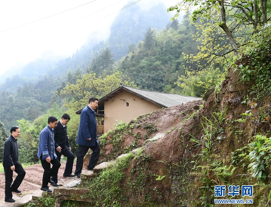 这是4月15日下午,习近平在石柱土家族自治县中益乡华溪村看望贫困户谭登周一家。 新华社记者 谢环驰 摄