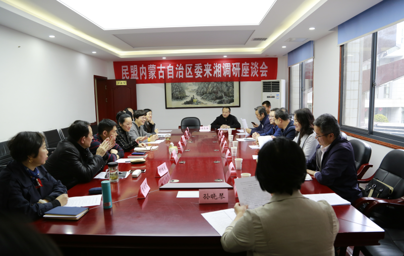 15日,调研组在民盟湖南省委机关会议室召开座谈会。民盟湖南省委专职副主委胡颖、秘书长刘春阳及机关办公会议成员参加了会议。