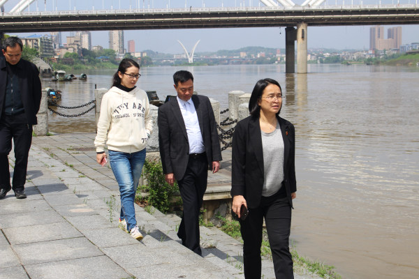16日上午,调研组成员与邵阳市水文局、农业农村局、林业局、工信局、水利局等部门负责人召开了座谈会,就资江邵阳段生态环境现状、保护力度、经济发展等进行了沟通交流。随后,实地考察了邵阳市区内资江沿岸的水质及排污问题。