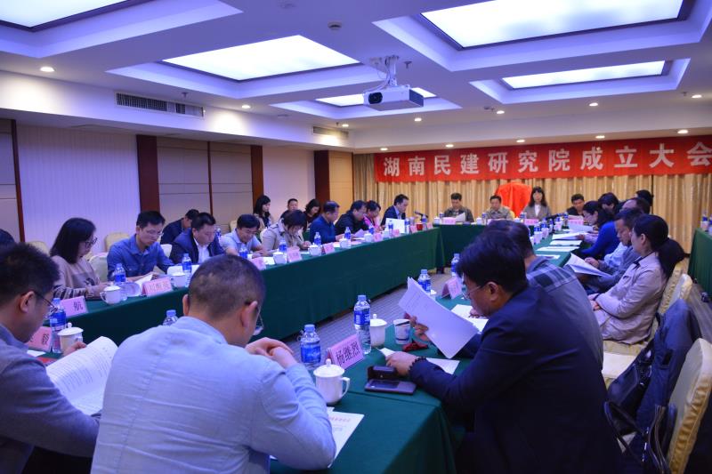 成立大会上介绍了湖南民建研究院筹备工作情况;宣读了《关于成立湖南民建研究院的决定》;进行了研究院揭牌仪式;为第一批湖南民建研究院特聘研究员刘敏、李琳、李海海、曾之明、蒋言斌、谢炜颁发了聘书;特聘研究员代表李琳进行了表态发言。