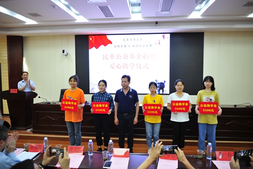 民革公益基金会还现场资助了5位品学兼优、家庭情况相对困难的同学,为他们每人捐赠一年的学费。