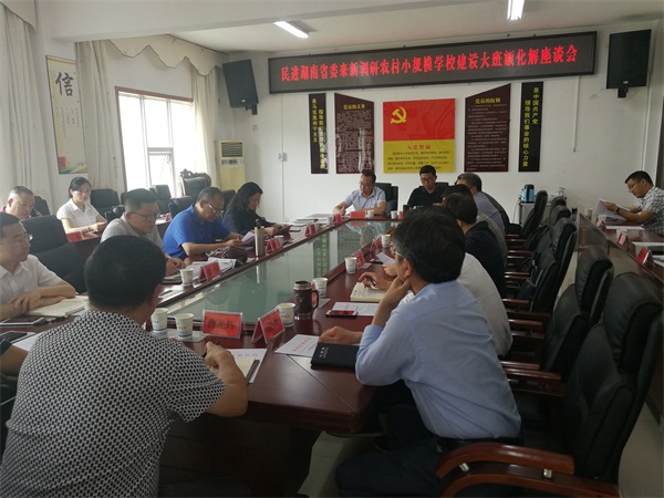 在“民进湖南省委来新调研农村小规模学校建设大班额化解座谈会”上,潘碧灵一行听取了新化县相关部门关于新化县教育基本情况及化解义务教育大班额、农村小规模学校及教学点建设情况的汇报,并就如何化解大班额问题和加强农村小规模学校及教学点建设问题深入交流。
