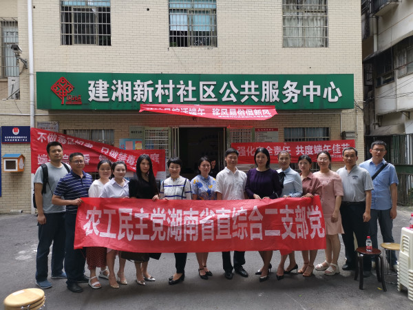 三湘统战网6月11日讯(通讯员 王晓光)为弘扬中华民族优秀传统文化,促进党员与群众互动交流,6月5日,农工党省委深入开福区建湘新村社区开展“端午粽飘香,温暖建湘情”主题活动。农工党省委常委李剑文、参政议政处处长孙逢华、办公室副主任彭晔、社会服务处副处长邓学君、省直综合基层委二支部主委陈凡参加活动。