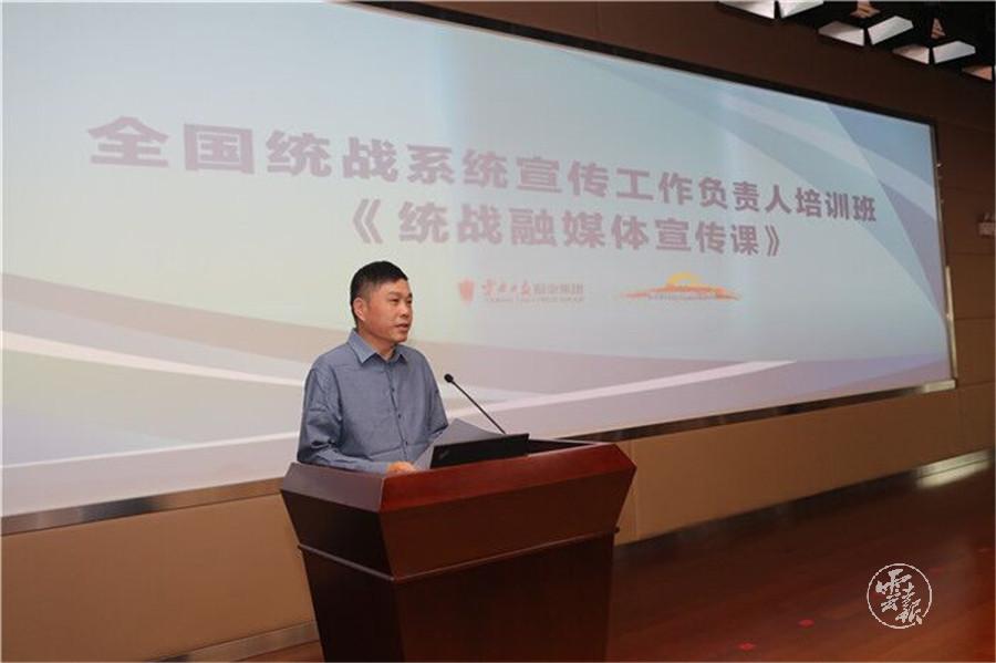 现场观摩教学的“融媒体统战宣传课”上,云报集团党委书记、社长徐体义介绍了云报集团“中央厨房”运作模式及“同心圆梦彩云南”融媒体统战宣传矩阵,播放了云南省委统战部制作的介绍“同心圆梦彩云南”融媒体统战宣传项目专题片——《“融”出一片新天地》。