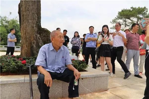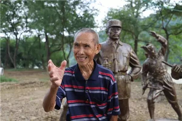 ▲邱声彪老人讲述老百姓当年帮助红军渡过潇水时的场景
