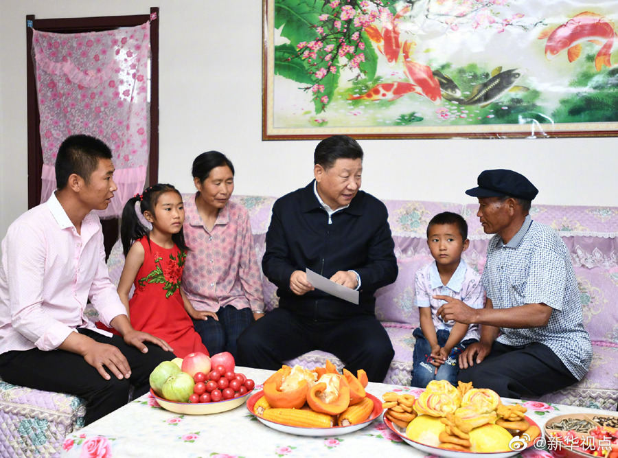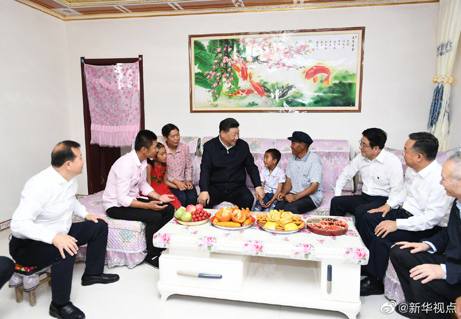 富民新村地处甘肃省古浪县黄花滩生态移民区,习近平总书记21日上午来到这里,看望从山区生态移民易地扶贫搬迁的乡亲们。他走进村民李应川家,小院洁净、住房敞亮、厨卫设施齐全。在客厅坐下来,李老汉拿出一张搬迁前的老照片给总书记看,曾经居住的土坯房同窗明几净的新居有天壤之别。习近平对这里群众生产生活条件发生的巨大变化感到十分欣慰,李老汉连连感叹现在日子太幸福了。习近平强调,你们高兴我们也高兴,共产党就是为人民服务的,就是为老百姓办事的,让老百姓生活更幸福就是共产党的事业。