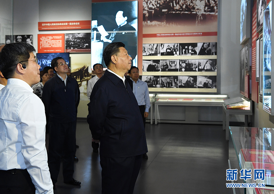 9月12日,中共中央总书记、国家主席、中央军委主席习近平视察中共中央北京香山革命纪念地。这是习近平在香山革命纪念馆参观《为新中国奠基》主题展览。 新华社记者 黄敬文 摄