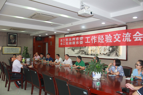 下午,市政协副主席、市卫健委主任、农工党市委主委欧阳德群带领市委委员、支部主委和机关干部一行13人到农工党湘潭市委会进行交流学习。一行首先参观了农工党湘潭市委会机关,并在机关会议室召开工作经验交流会。与会人员就党员发展、主题教育活动、品牌建设等具体工作进行了深入的交流探讨。