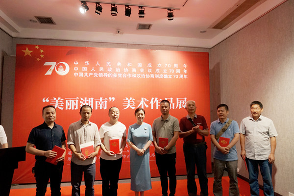 三湘统战网9月28日讯(通讯员 王家璐)9月28日上午,为庆祝中华人民共和国成立70周年、中国人民政治协商会议成立70周年、中国共产党领导的多党合作和政治协商制度确立70周年,农工党湖南省委举办的“美丽湖南”美术作品展开幕式在湖南省画院举行。