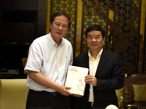 何报翔代表民革湖南省委向民革宁夏区委张守志一行赠送了由民革湖南省委编著、团结出版社出版的《民革前辈与湖南和平解放》。