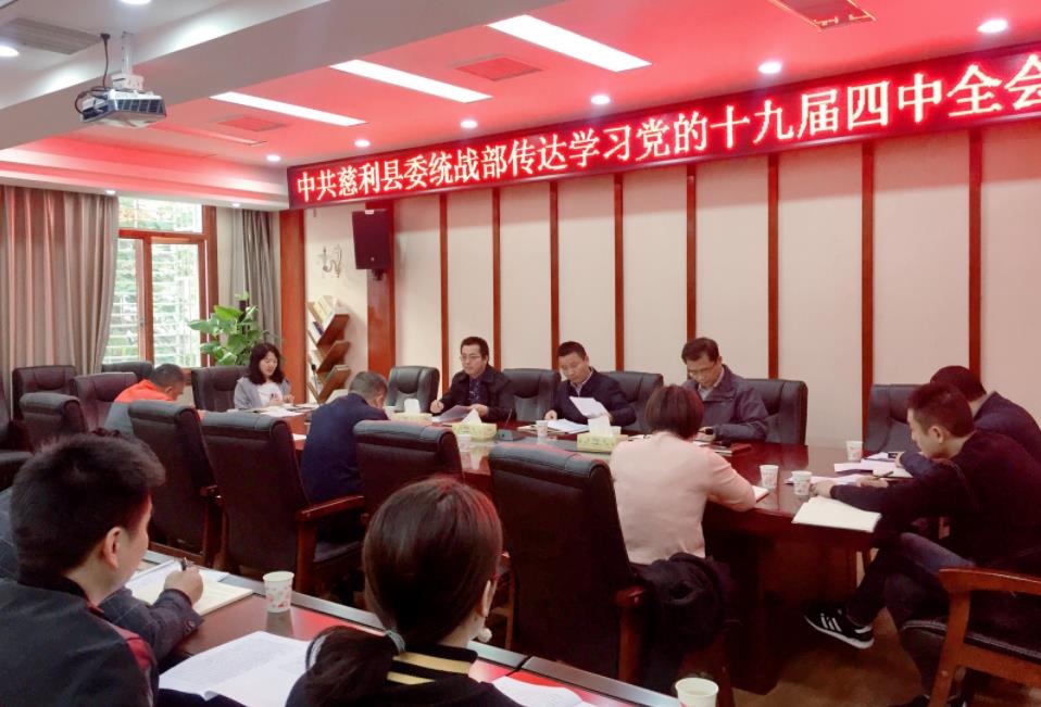 三湘统战网11月13日讯(通讯员 汤言凤)11月8日,慈利县委统战部组织部机关、县民宗局、县工商联、县侨联全体干部职工传达学习党的十九届四中全会精神。县委常委、县委统战部部长李勇参加会议。